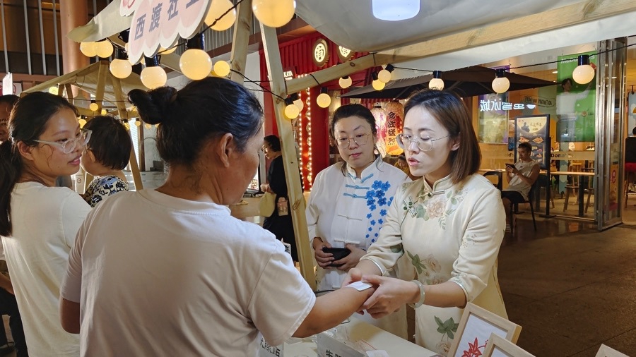 与此同时,“中医夜市” 现场精彩纷呈,吸引都市上班族们边逛夜市边学养生。奉贤7家社区卫生服务中心联合开展超有料的 “中医体验小课堂”——皮肤管理、药膳与养生茶饮、中式养生糕点品鉴、耳穴、艾灸条制作、中草药识别、拔罐等。耳穴摊位前人头攒动,耳穴治疗的核心理念是通过刺激耳部与脏腑、经络关联的特定穴位,调节内分泌及自主神经功能,改善更年期激素波动引发的身心失衡。市民们或亲手制作艾灸条,感受传统中医技艺的温度;或在中草药展示区辨认药材、学习功效;或体验拔罐、耳穴等理疗项目,在逛吃逛玩中解锁健康新知识!
